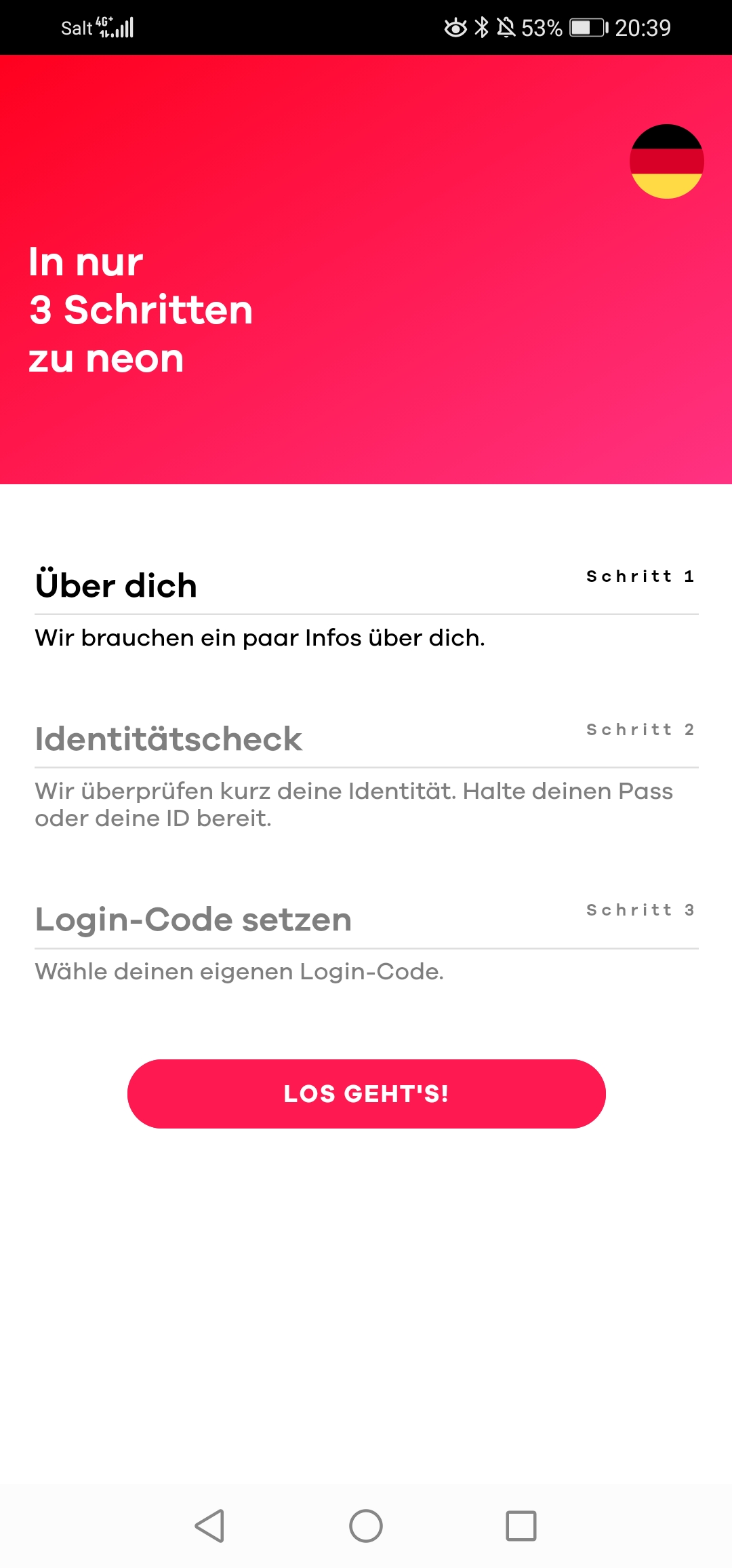 Die Neon Bank App ist in Googles Store und Apples App Store verfügbar. Die gesamte Eröffnung eines neon-Kontos dauert optimal nur 10 Minuten.