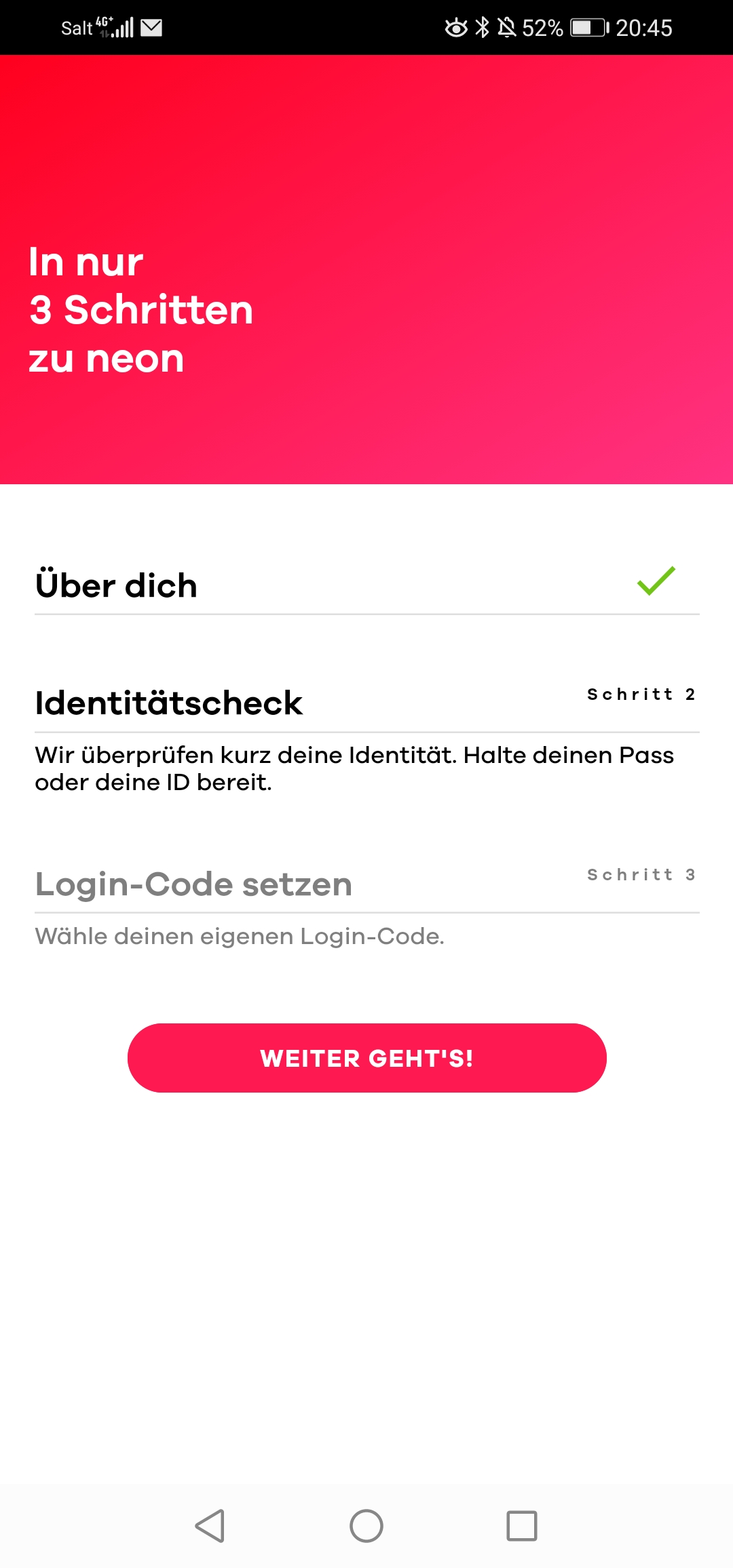 - Du hast auf dein neon Konto nur Zugriff über dein Smartphone, ein Webclient suchst du vergeblich.